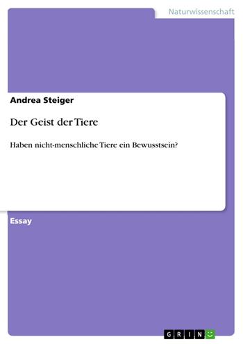 Essay aus dem Jahr 2008 im Fachbereich Biologie - Verhalten, Note: 1.5, Universität Zürich (Mathematisch-naturwissenschaftliches Institut), Veranstaltung: Philosophie der Biologie, Sprache: Deutsch, Abstract: Der französische Philosoph René Descartes (1596 – 1650) begründete die sogenannte Zweisubstanzenlehre, welche postuliert, dass es zwei unabhängige, nicht voneinander ableitbare Substanzen gibt. Dabei unterschied Descartes zwischen einer sogenannten res cogitans, die „denkende Substanz“ (Geist, Seele, Bewusstsein), und der res extensa, dem „ausgedehnten Körper“ (Leib, Materie). Die „denkende Substanz“ ist strikt vom „ausgedehnten Körper“ zu trennen und „(…) kann als solche kein Attribut der Körperlichkeit auf sich beziehen. Sie ist somit von allen materiellen Dingen getrennt, die im Körper als res extensa auftreten. Die bloße Materie als res extensa ist somit auch streng getrennt von der denkenden Substanz (Röd, 1999, S. 73).“ Nach Thomas (2006) schrieb Descartes den Menschen als einzige Kreaturen der Welt eine res cogitans und damit Denkvermögen zu. Nach seiner Lehre bestehen Tiere nur aus Materie. Sie können auch als Maschinen betrachtet werden. Die Position von Descartes wurde in der Tierphilosophie kritisiert. Nach Wild (2008) verfährt die Tierphilosophie assimilationistisch. Dies bedeutet, dass bei den Gemeinsamkeiten zwischen Menschen und nicht-menschlichen Tieren angesetzt wird. Bei der Frage nach dem Geist geht die assimilationistische Sichtweise von einer Kontinuität zwischen Tieren und Menschen aus und versucht dabei graduelle Abweichungen von Geist bei verschiedenen Lebewesen festzustellen. Descartes hingegen verfährt differentialistisch und betont damit stärker die anthropologische Differenz1. Um die Frage zu klären, ob Tiere über einen Geist oder ein Bewusstsein verfügen, muss in erster Linie dargelegt werden, was unter Bewusstsein zu verstehen ist und welche Arten von Bewusstsein in der Philosophie unterschieden werden.