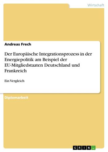 Diplomarbeit aus dem Jahr 2009 im Fachbereich BWL - Allgemeines, Note: 1,7, Hochschule München (Fakultät für Betriebswirtschaft), Sprache: Deutsch, Abstract: Energie- und Klimapolitik der EU; Der Europäische Integrationsprozess; Energiepolitik; Vergleich der Wirtschaftspolitik in Deutschland und Frankreich; Energiepolitische Gefahren für die Europäische Union; Der Energielieferant Russland; Die Planification in Frankreich; Wirtschaft Deutschlands und Frankreichs