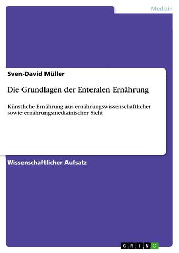 Wissenschaftlicher Aufsatz aus dem Jahr 2010 im Fachbereich Gesundheit - Ernährungswissenschaft, , Sprache: Deutsch, Abstract: Unter den Schlagworten "Künstliche Ernährung" werden die enterale Ernährung und die parenterale Ernährung zusammengefasst. Künstliche Ernährung ist erforderlich, wenn Menschen (Patienten) nicht essen können, wollen, dürfen oder sollten. Die Nahrungsaufnahme erfolgt im Rahmen der künstlichen Ernährung nicht mit üblichen Lebensmitteln, sondern mit Infusionslösungen (parenterale Ernährung) oder bilanzierten Diäten (Supplement, Trink- und Sondennahrung; pulverisiert oder flüssig im Rahmen der enteralen Ernährung). Für viele Patienten ist die klinische Ernährung der entscheidende Faktor im Gesamtbehandlungskonzept zur Wiederherstellung und/oder Aufrechterhaltung ihrer Gesundheit und Lebensqualität. Wichtige Beispiele sind Patienten mit Morbus Crohn, Colitis ulcerosa, Schluckstörungen (Dysphagie), HIV-Infektion oder AIDS und Tumorpatienten (zur Vermeidung oder unterstützenden Ernährungstherapie der Tumorkachexie). Die Ernährungstherapie kann andere therapeutische Maßnahmen unterstützen, Komplikationen vermeiden und die Rekonvaleszenz verkürzen. Der ernährungsmedizinische Wissenschaftler hat sich insbesondere auf die Bereiche Diätetik und Ernährungstherapie bei metabolischen Erkrankungen (Diabetes mellitus, Übergewicht und Adipositas sowie Fettstoffwechselstörungen), gastroenterologischen Erkrankungen (Morbus Crohn und Colitis ulcerosa), Allergien und Unverträglichkeiten (Fruchtzuckerunverträglichkeit und Laktoseinoleranz) sowie hepatologischen Erkrankungen spezialisiert. Er ist Träger des Bundesverdienstkreuz und der Ehrenmedaille für Wissenschaft und Kunst der Albert Schweitzer Gesellschaft. Aus seiner Feder verzeichnet die Deutsche Nationalbibliothek mehr als 170 Buchtitel (14 Sprachen). Zu seinen Bestsellern gehören "Das Kalorien-Nährwert-Lexikon", "Die 50 besten Kalorienkiller", "Die Müller-Diät" , "Kalorien-Ampel", "Salz Ampel", "Low Carb Ampel", "Zimt gegen Zucker", "Ernährungsratgeber Gicht", "Das große Rheuma Kochbuch" sowie "Wir essen uns schlank" und die "Gicht-Ampel". Mit einer Auflage von 6,5 Millionen Exemplaren gehört er zu den erfolgreichsten Autoren in seinem Fachbereich in Europa. Sven-David Müller ist gern gesehener Gast in TV-Sendungen und regelmäßig Interviewpartner für Zeitschriften, Radio und Zeitungen. Sven-David Müller war rund 10 Jahre an der Universitätsklinik Aachen beschäftigt. Hier hat er mehr als 25.000 Patientenkontakte gehabt. Er ist Vorstandsvorsitzender des Deutschen Kompetenzzentrum Gesundheitsförderung und Diätetik (www.dkgd.de). Heute leitet Sven-David Müller das Zentrum und die Praxis für Ernährungskommunikation, Diätberatung und Gesundheitspublizistik (ZEK) in Nidderau-Windecken bei Frankfurt am Main. Sven-David Müller ist mit der Diplom-Pädagogin Almut Müller verheiratet und Vater eines Sohnes. Zudem hält er Vorlesungen und Vorträge, gibt Seminare und steht Krankenkassen, Verbänden und Organisationen als Berater und Experte zur Verfügung.