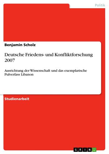 Studienarbeit aus dem Jahr 2007 im Fachbereich Politik - Thema: Frieden und Konflikte, Sicherheit, Note: 1,0, Ruprecht-Karls-Universität Heidelberg, Sprache: Deutsch, Abstract: Fragestellung Diese Arbeit soll an der Entgrenzung der Begriffe „Frieden“, „Konflikt“ und „Gewalt“ ansetzen und einen Beitrag zur Diskussion über die Zielsetzung und Validität der Friedens- und Konfliktforschung liefern – zunächst allgemein, später am Beispiel des Libanon. Diese Entgrenzung (das Problem zu bestimmen, was Gewalt ist und was Frieden ausmacht) hat ihren Ursprung im - zu Recht - normativen Anspruch, dass es sich um eine engagierte Friedensforschung im Sinne des damaligen Wissenschaftsrates handeln soll, die tiefer gehende soziale, wirtschaftliche und ökologische Gründe mit im Blickfeld hat. Welchen Nutzen hätte heute sonst eine lediglich auf empirisch-analytische Betrachtung begrenzte Friedensforschung? Gerade in einer Zeit, in der das weltweite Konfliktpanorama äußerst schwer zu durchschauen ist, verglichen mit dem Kalten Krieg. Es reicht nicht mehr, platt gesagt, nur Rüstungsausgaben zu erfassen. Zudem besteht entgegen anderen Forschungsbereichen nicht die Gefahr von interessengeleiteter Forschung, die zu unerwünschten Ergebnissen führen könnte. Jeder Mensch strebt nach Sicherheit, und damit nach Frieden, es sei denn, die Gewalt kann ihm mehr Sicherheit garantieren (wie bei einer Gewaltökonomie). In meinem ersten Abschnitt gehe ich auf Begriffsbestimmungen ein; darauf folgt die Vorstellung der Arbeitsgemeinschaft Kriegsursachenforschung Hamburg (AKUF) sowie des Heidelberger Institut für internationale Konfliktforschung (HIIK) und deren wissenschaftliche Ansätze/Methoden. Im dritten Kapitel wird anhand der komplexen Konfliktstruktur im Libanon beleuchtet, welche Qualität diese Ansätze haben, die nun oft angesprochenen tiefer gehenden Gründe zu erkennen und zu analysieren. Danach folgt eine weitere historische Betrachtung des Libanon, die eine mögliche Erweiterung der Ansätze darstellen soll. Abschließend folgen Fazit und Ausblick.