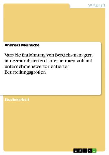 Variable Entlohnung von Bereichsmanagern in dezentralisierten Unternehmen anhand unternehmenswertorientierter Beurteilungsgrößen (eBook)