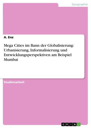 Studienarbeit aus dem Jahr 2009 im Fachbereich Geowissenschaften / Geographie - Wirtschaftsgeographie, Note: 1,3, Universität zu Köln, Sprache: Deutsch, Abstract: Mit rund 18 Millionen Einwohnern ist die Megacity Mumbai, früher Bombay, gegenwärtig die fünftgrößte urbane Agglomeration weltweit. Die Mumbai Metropolitan Region, wie diese Agglomeration genannt wird, umfasst ein Gebiet, das der Größe des Ruhrgebiets entspricht. 30% des indischen Steueraufkommens werden dort generiert. Neben Mumbai zählt Indien zurzeit drei weitere Megacities: Calcutta, Delhi und Madras. Bis 1991 bestand Indiens Wirtschaftssystem aus einer zentral gelenkten Planwirtschaft, die in einigen Bereichen die Existenz einer Privatwirtschaft zuließ. Importe wurden reguliert und Devisen beschränkt. Die dann folgende schrittweise Liberalisierung und Öffnung brachte Indien in ausgewählten Wirtschaftsbranchen, wie zum Beispiel der IT-Industrie, einen enormen Aufschwung. Erstaunlich schnell und erfolgreich vollzog sich ein Strukturwandel vom sekundären zum tertiären Sektor hin. Das Land partizipierte nun an der Weltwirtschaft und ausländische Direktinvestitionen wurden in Indien möglich. Geschäftsstellen ausländischer und international bedeutender Konzerne sowie Einkaufstempel und amerikanische Fast-Food-Ketten inmitten von Mumbai lassen unweigerlich erkennen, dass die Globalisierung Einzug in die Stadt gehalten hat. Jedoch hat Mumbai zwei Gesichter: Auf der einen Seite ist es für Indien Sinnbild des wirtschaftlichen Aufschwungs, auf der anderen Seite herrscht seit Jahren eine Verelendung der Massen. Die vorliegende Arbeit beschäftigt sich mit dem Phänomen der Megacity Mumbai: Wie ist es möglich, dass eine Stadt solch ein gigantisches Ausmaß sowohl hinsichtlich der Einwohnerzahl als auch hinsichtlich der Fläche erreicht? Auf diese Frage wird in Abschnitt 2 eingegangen, bevor die Schattenseiten der Megacity anhand der sozialräumlichen Disparitäten, des informellen Sektors und der Infrastruktur erläutert werden. Abschnitt 3 beschäftigt sich mit der Frage, was überhaupt eine Megacity ausmacht und welche nationale sowie globale Bedeutung daraus für Mumbai resultiert. Zudem wird in diesem Abschnitt auf Mumbais kulturelle Entwicklung eingegangen. Dabei soll die Arbeit insbesondere eine Antwort auf die Frage geben, inwieweit die Entwicklung einer Megacity wie Mumbai bewusst gesteuert werden kann.