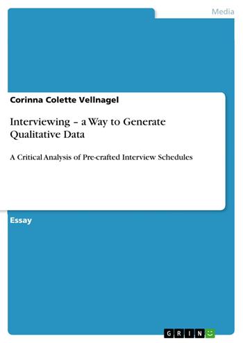 Essay from the year 2010 in the subject Communications - Methods and Research Logic, grade: Excellent, The University of Surrey (Department of English), language: English, abstract: Generating data can be made for all kind of purposes and in several ways (Milena et al.: 2008), whereas the main focus lies on the distinction between quantitative and qualitative research (Gerson et al.: 2002). When it comes to research most people generally think of the more common, traditional and familiar quantitative research which includes methods such as questionnaires, the creation of theories and models or the accumulation of empirical data (Holliday: 2002). This paper deals with interviewing, more precisely with interview schedules, as a method of generating qualitative data within primary market research. The structure of the work is as follows: Starting up with a the theoretical foundation with regards to interviewing, its possibilities within qualitative research and its configuration possibilities in the first part, the second part deals with the analysis of a workshop held on the topic “Generating Qualitative Data: Interviewing” within the lecture “Introduction to Research Methods” in the MA course Intercultural Communication with International Business. Within the analysis of the interview schedule problems, difficulties and limits of working with pre-crafted, semi-structured interview schedules are being identified and pointed out. Although it is not common to write a paper in another but the neutral voice a voice change into the first person takes place due to the fact that this part of the paper (3 Practical Application within the Workshop “Generating Qualitative Date: Interviewing”) delves into the personal experience and therefore requires a more personalised style. Finally, the paper concludes with a short review of the difficulties occurring when using a pre-crafted semi-structured interview schedule.