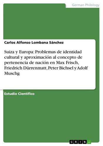 Estudio Científico del año 2010 en eltema Filología alemana - Literatura comparada, Nota: 1, Universidad Complutense de Madrid, Idioma: Español, Resumen: ¿Qué motivos pueden esgrimirse para explicar que Suiza, uno de los países más 'europeos' del continente, no forme parte de la Unión Europea? De la mano de cuatro autores fundamentales de la literatura suiza en lengua alemana, Max Frisch, Friedrich Dürrenmatt, Peter Bichsel y Adolf Muschg, el artículo recorre los problemas de identidad cultural y lleva a cabo una aproximación al concepto de pertenencia de nación que estos autores reflejan en sus obras. Compatibilidades e incompatibilidades políticas o culturales entre Suiza y Europa parecen estar lejos de ser el principal problema de su conflicto. El presente estudio presenta de forma sistemática y científicamente opiniones representativas de cuatro representantes 'clásicos' enfrentándolos entre sí acerca del tema común: ¿Suiza y/o Europa?