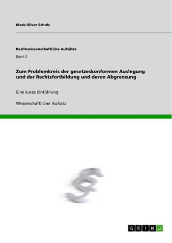 Wissenschaftlicher Aufsatz aus dem Jahr 2011 im Fachbereich Jura - Sonstiges, , Sprache: Deutsch, Abstract: Unser Recht ist ständig in Bewegung, was zum Einen aus sich ändernden Umständen, zum Anderen an der Starrheit der Sprache und den damit verbundenen Gestaltungsschwierigkeiten bei der Schaffung abstrakter Normen, die auf eine Vielzahl von Fällen zutreffen sollen, resultiert. Dieser Aufsatz beschäftigt sich mit dem Problemkreis der erforderlichen Gesetzesauslegung und der ebenfalls zwangsläufigen Rechtsfortbildung.