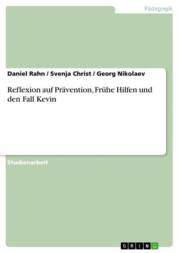 Studienarbeit aus dem Jahr 2011 im Fachbereich Pädagogik - Pädagogische Soziologie, Note: 2,3, Johann Wolfgang Goethe-Universität Frankfurt am Main, Sprache: Deutsch, Abstract: Kindeswohlgefährdungen, Risiken, Frühe Hilfen oder Frühwarnsysteme sind Begriffe, die immer öfter in öffentlichen, politischen oder fachlichen Kreisen (Jugendämter, Polizei, Justiz,Pädagogik/sozialer Arbeit, Psychologie usw.) umso intensiver diskutiert werden, je aktueller ein Fall eines vernachlässigten, gestorbenen oder ermordeten Kindes ist. Mit dieser Ausarbeitung zum Thema „Reflexion auf Prävention, Frühe Hilfen und der Fall Kevin“ möchten wir den Versuch unternehmen den Fall Kevin genauer zu betrachten, mögliche Fehler im Umgang mit dem Fall zu entdecken und ggf. Ansätze zu formulieren, die dieses Verbrechen (alle Delikte die mit einer mindest Androhung von einem Jahr Freiheitsstrafe belegt sind1; z.B. Raub, schwere Körperverletzung mit und ohne Todesfolge)hätten vermeiden können. Es soll aufgezeigt werden, wie Datenschutz bei präventiven Maßnahmen Berücksichtigung finden sollte und muss und wie Risiken konstruiert werden.Aus diesen Konstruktionen werden dann präventive Maßnahmen abgeleitet. Außerdem soll gezeigt werden, wie u.U. diese Maßnahmen – wie im Fall Kevin – scheitern können.