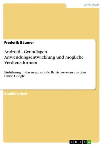 Studienarbeit aus dem Jahr 2011 im Fachbereich BWL - Offline-Marketing und Online-Marketing, Note: 1,3, Fachhochschule Aachen, Veranstaltung: eCommerce - Schwerpunkt Wirtschaftsinformatik, Sprache: Deutsch, Abstract: Als Google im August 2005 die Übernahme der erst 2003 gegründeten Softwareschmiede Android bekannt gab, war dies vor allem in Kombination mit einer weiteren Übernahme brisant: Bereits im Mai 2005 hatte Google das mobile soziale Netzwerk Dodgeball übernommen. Google erweiterte damit sein Produktportfolio um zwei wichtige Produkte und sorgte in den kommenden Jahren für viel Wirbel auf dem mobilen Werbemarkt, sowie dem Markt für mobile Endgeräte. Dies ist unter anderem durch die starken Partner von Google möglich. Die Entwicklung von Android wird seit Beginn an von der Open Handset Alliance übernommen, der neben Google auch Internet-, Hardware und Softwareunternehmen wie eBay, T-Mobile, China Mobile, Texas Instruments HTC, LG Electronics, Motorola und Samsung angehören. Weitere sind in der vergangenen Zeit beigetreten. Schon nach zwei Jahren kann Android einen Marktanteil von 18% vorweisen und gehört mit insg. 100.000 Anwendungen und einem Wachstum im Anwendungsmarkt von 19% zu den größeren Wettbewerbern auf dem Mark. Damit ist Android neben einem attraktiven Betriebssystem insbesondere eine für Entwickler attraktive, neue Softwareplattform. Android wird somit zu einem Zeitpunkt populär, in dem mobile Endgeräte durch einen hohen Leistungsstandard neue Arten und Umfang in der Anwendung ermöglichen, aber auch in der Benutzung an Komfort gewinnen und so ein größeres Publikum ansprechen. Auch wird durch die zunehmende Vernetzung insbesondere mit sozialen Netzwerken der (subjektive) Bedarf und Nutzen dieser mobilen Endgeräte größer. Der (genutzte) Funktionsumfang geht weit über das klassische Telefonieren und Schreiben von Kurznachrichten hinaus. Ziel dieser Arbeit ist es, dem Leser die Grundlagen und die Motivation hinter Android zu erläutern, einen Überblick über die Entwicklungsformen und deren Besonderheiten zu geben, sowie die Bedeutung für den mobilen Commerce darzustellen. Im Besonderen wird auf die möglichen Verdienstmöglichkeiten eingegangen. Somit richtet sich diese Arbeit auch an Unternehmen, die Androidgeräte vertreiben oder dafür entwickeln wollen.
