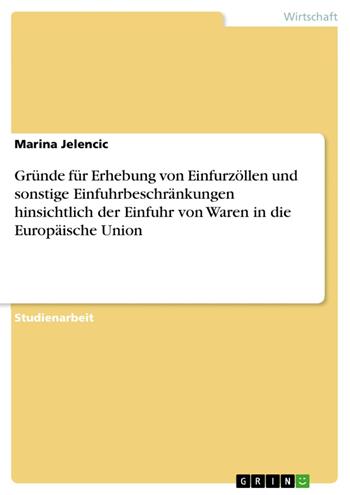Gründe für Erhebung von Einfurzöllen und sonstige Einfuhrbeschränkungen hinsichtlich der Einfuhr von Waren in die Europäische Union (eBook)