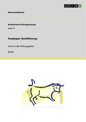 Skript aus dem Jahr 2011 im Fachbereich BWL - Rechnungswesen, Bilanzierung, Steuern, , Veranstaltung: -, Sprache: Deutsch, Abstract: Dieses Paukpaper enthält komprimiert alle Konten und Buchungssätze, die man in einer Buchführungsprüfung grundsätzlich können muss mit einem Schema zur sicheren Vermeidung von "Drehern": Auswendig lernen und die Prüfung sicher bestehen!