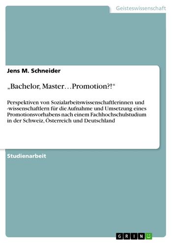 Studienarbeit aus dem Jahr 2011 im Fachbereich Soziale Arbeit / Sozialarbeit, Note: 1,0, Hochschule Koblenz (ehem. FH Koblenz), Sprache: Deutsch, Abstract: Am 27. und 28. November 2010 fand die Jahrestagung der Deutschen Gesellschaft für Soziale Arbeit an der Evangelischen Hochschule Freiburg im Breisgau statt. Die Tagung trug den Titel „Generalisierung und Spezialisierung Sozialer Arbeit im inter-nationalen Maßstab“. Während der Tagung boten Wissenschaftler und Hochschullehrer zu dem Thema Aus- und Weiterbildung in der Sozialen Arbeit Beiträge aus verschiedenen Ländern dar. Neben u.a. deutschen Vertretern stellten auch Repräsentanten aus Österreich und der Schweiz die Ausbildungsstrukturen an den Hochschulen ihrer einzelnen Länder vor. Im Fokus stand dabei die Umstellung auf die einheitlich gestufte Ausbildungsstruktur (Bachelor, Master, Promotion) an den Fakultäten für Soziale Arbeit. Dabei wurden Unterschiede zwischen den einzelnen Ländern im deutschsprachigen Raum deutlich, die eine Betrachtung en detail wert sind. Die Jahrestagung ist somit Anstoß für das Interesse und die leitende Fragestellung dieses synchronen Vergleichs: Wie haben die Länder im deutschsprachigen Raum die Reform umgesetzt? Im Mittelpunkt stehen dabei die Möglichkeiten einer wissenschaftlichen Laufbahn im Sinne einer Promotion und lehrenden respektive forschenden Position angehender Sozialarbeitswissenschaftler, um die Fragestellung - angesichts des intendierten Umfangs dieser Arbeit - einzugrenzen. Entsprechend des Erkenntnisinteresses wird die Materie dieses Vergleichs zunächst genauer definiert. Im Anschluss daran werden die dafür relevanten Vergleichskatego-rien exponiert. In der Deskriptionsphase werden die Entwicklungslinien der Ausbildung Sozialer Arbeit in den Ländern kurz nachgezeichnet. Darauf folgend werden die Hochschulen und Fakultäten näher beleuchtet, um dann anschließend spezifisch auf die einzelnen Studienstrukturen und Chancen zur Promotion einzugehen. Hochschul- und professionspolitische Aspekte werden - sofern bedeutsam - mit einbezogen. Darüber hinaus werden die erhobenen Daten in der Juxtaposition nebeneinander gestellt. Ferner werden die Fakten in der Phase des eigentlichen Vergleichs bezugnehmend auf die Ausgangsfrage bewertet und interpretiert. Letztlich werden die wesentlichen Schlussfolgerungen in einem Fazit aufgezeigt.