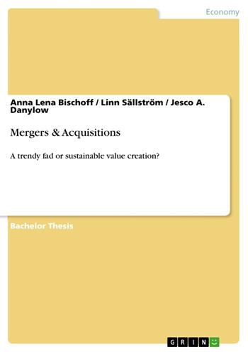 Bachelor Thesis from the year 2011 in the subject Business economics - Investment and Finance, grade: B/1,7, , language: English, abstract: Today, companies need to constantly expand their business to stay ahead of the severe competition. As competition grows more intense, it makes sense to join forces or simply acquire the rival to provide the most diverse service and to reach even the last customer. But is it really only about the need for efficiency to merge and acquire competitors? Are managers and investors right about their hope, that every new acquisition or merger offers more control over the market? Or are they themselves pushed into these promising expectations? This research focuses on how social behavior influences value creation in mergers and acquisitions. Throughout history, waves have been observed that reflect the excessive hype for perennial need of growth. Growth by acquisitions and mergers is seen as key element to create value by investors and managers. However, reality looks different. This research focuses on a two step approach by first describing underlying social catalysts that amplify the trend towards value creation in mergers and acquisitions. Secondly, to verify the investigation of social behavior, the results are matched to a financial approach to detect whether the transaction price justifies the current value and possible synergies or whether value is destroyed. A case study was conducted of Boss Media AB, a software company situated in the online gaming industry, which experienced several mergers and acquisitions since their foundations and was eventually acquired itself. The company provided an interview and further information on their involvement with mergers and acquisitions. The research showed that mergers and acquisitions continue to increase in number and value, leading to the amplitude of each wave being higher than the previous one. This also means that more value is destroyed. It is illustrated that managers being determined to have bet on the right horse, are often more influenced by social behavior and trends than they think they are. Blinded by the overestimation of their own abilities, and prosperous shortterm profits, managers overvalue their investment choices. Hence, the research implies that managers destroy shareholder value even though they initially intended to create it.