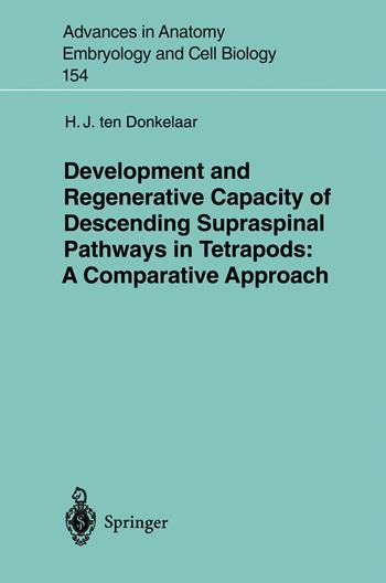 In this treatise, current knowledge on the neurogenesis, axonal outgrowth, synaptogenesis, and regenerative capacity of descending supraspinal pathways in tetrapods is discussed. Although emphasis is on the clawed toad, Xenopus laevis, chicken embryos, opossums and rodent data, also the data available for primates including man are presented. It will be shown that 1) the outgrowth of descending supraspinal pathways is the result of a coordinated program; 2) the pattern of early descending axonal tracts is similar in all vertebrate groups; 3) the formation of descending supraspinal pathways occurs according to a developmental sequence; 4) the earliest descending supraspinal fibers arrive in a rather immature spinal cord, and 5) the regenerative capacity of descending supraspinal pathways depends on the developmental stage the particular pathways arise.