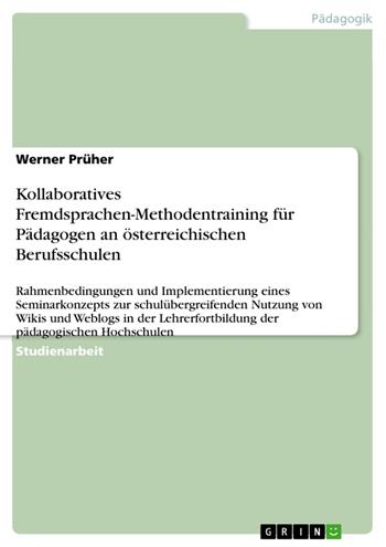 Studienarbeit aus dem Jahr 2011 im Fachbereich Pädagogik - Schulwesen, Bildungs- u. Schulpolitik, Note: 1,0, FernUniversität Hagen (Fakultät für Kultur- und Sozialwissenschaften), Veranstaltung: Anwendungsfelder und Handlungsbedingungen, Sprache: Deutsch, Abstract: Der Fremdsprachenunterricht an der Berufsschule sollte geprägt sein von kommunikativen und innovativen Unterrichtsmethoden, die Schülerinnen und Schüler motivieren, die erlernte Fremdsprache auch zu gebrauchen. Solche Methoden eröffnen Zugänge zu Inhalten und bahnen Lernsituationen an, bei denen Schülerinnen und Schüler Handlungskompetenzen entwickeln (Esslinger-Hinz, 2007, S. 154). Einige wenige Methoden genügen dafür nicht, die Lehrkraft sollte vielfältige Methoden in ihrem Repertoire zur Verfügung stehen haben. Der Spruch „Teachers teach as they were taught, not as they were taught to teach“ beschreibt ein Lehrerhandeln, das maßgeblich von den eigenen Lernerfahrungen geprägt wurde (Busian & Pätzold, 2004, S. 2). Nicht alle Lehrerinnen und Lehrer an Berufsschulen hatten das Glück, in den Jahren vor ihrer Matura (bzw. Reifeprüfung) von methodisch exzellent ausgebildeten Lehrerinnen und Lehrern in einer Fremdsprache unterrichtet worden zu sein. Gerade Berufsschullehrerinnen und –lehrer sind oft Späteinsteiger in den Lehrberuf, eine solide Ausbildung in Unterrichtsmethoden speziell für Fremdsprachen sollte für alle neu eingestellten Lehrkräfte vorgesehen sein. Das vorliegende Methodentraining in Form eines Seminarkonzepts beschreibt einen möglichen Weg, wie sich Lehrerinnen und Lehrer kollaborativ über praxisnahe Unterrichtsmethoden austauschen können. Dies erfolgt möglichst ressourcenschonend, was Vertretungsstunden, Reisekosten und Abwesenheitszeiten betrifft. Zudem entsteht eine praxisnahe Methodensammlung im Internet, die anderen Kolleginnen und Kollegen ermöglicht, die erprobten Methoden zu verwenden, auch wenn sie am Seminar nicht teilgenommen haben.