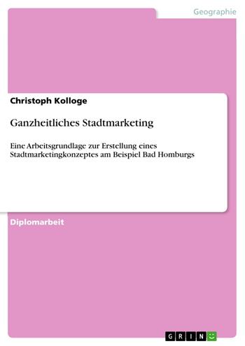 Diplomarbeit aus dem Jahr 2011 im Fachbereich Geowissenschaften / Geographie - Wirtschaftsgeographie, Note: 1,3, Justus-Liebig-Universität Gießen (Institut für Geographie), Sprache: Deutsch, Abstract: In den letzten Jahren ist die Verbreitung des Stadtmarketings sprunghaft angestiegen. In den frühen 80er Jahren beschränkten sich die Stadtmarketingaktivitäten in Deutschland noch auf wenige Pilotstädte, mittlerweile betreiben aber über 80 % aller deutschen Städte Formen des Stadtmarketings. Das Stadtmarketing vieler Städte entspricht aber einer reinen Stadtwerbung. Solche Städte verzichten überwiegend auf eine nähere Betrachtung ihrer Zielgruppen, obwohl es beim Stadtmarketing zentral darum geht, alle Instrumente der Vermarktung an den Bedürfnissen der verschiedenen Zielgruppen auszurichten. Auch münden ihre Projekte oftmals in kurzfristigem Aktionismus. Das ganzheitliche Stadtmarketing zeichnet sich im Kontrast zur bloßen Stadtwerbung dadurch aus, dass auf der Grundlage einer Situations- und Zielgruppenanalyse ein Marketingkonzept erstellt wird, das ein Leitbild, Maßnahmen und ein Controlling enthält. Dieses Vorgehen ermöglicht langfristige Verbesserungen des „Produktes Stadt“ durch eine Einigung vieler Akteure auf gemeinsame Ziele, eine vernetzte und abgestimmte Planung und eine Ausrichtung der städtischen Angebote an den Zielgruppen. Das Ziel der vorliegenden Arbeit liegt darin, eine Arbeitsgrundlage für ein Stadtmarketingkonzept in Bad Homburg zu entwickeln. Hinter diesem Ziel steht die zentrale Hypothese, dass durch einen Ausbau des Bad Homburger Stadtmarketings zu einem ganzheitlichen Ansatz Defizite der Stadt effizienter behoben werden könnten als durch den bisherigen Ansatz der reinen Stadtwerbung.