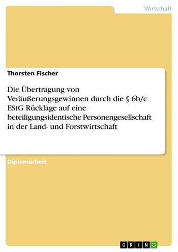 Diplomarbeit aus dem Jahr 2010 im Fachbereich BWL - Rechnungswesen, Bilanzierung, Steuern, Note: 2,3, Universität des Saarlandes (Betriebswirtschaftliches Institut für Steuerlehre und Entrepreneurship Lehrstuhl für Betriebswirtschaftslehre, insb. Betriebswirtschaftliche Steuerlehre Institut für Existenzgründung/Mittelstand), Sprache: Deutsch, Abstract: „§ 6b EStG – quo vadis?“ fragt JACHMANN und KANZLER titelt „Der Sechs-B und die Landwirte“ . Worin besteht daher die Verbindung des § 6b EStG mit den Landwirten? Der Verkauf von ungenutzten oder nicht mehr benötigten Wirtschaftsgütern aus dem Betriebs¬vermögen und die hieraus entstehenden Veräußerungsgewinne bilden die Grundlage der folgenden Ausführungen. Das nicht mehr benötigte Betriebsvermögen in der Land- und Forstwirtschaft (LuF) wird beispielhaft in der vorliegenden Arbeit betrachtet. Grundstücke in der Nähe von Ballungszentren liegen meist noch im Eigentum von Land- und Forstwirten. Diese erzielen nur teilweise in der LuF ihr Einkommen, mittlerweile werden die Haupteinnahmen in anderen Beschäftigungen generiert. Dennoch besteht der luf-Betrieb in ruhender oder verpachteter Form weiter und Flächen die vorher land- und forstwirtschaftlich (luf) genutzt wurden liegen für den Steuerpflichtigen (Stpfl.) meist brach. Der Verkauf der Flächen spielt dann eine Rolle, wenn sich ein Unternehmen erweitern möchte. Wird bspw. auf der sog. grünen Wiese ein neues Frachtzentrum gebaut, müssen meist erhebliche Geldbeträge aufgewendet werden um dem Land- und Forstwirt den Verkauf dafür schmackhaft zu machen. Der Land- und Forstwirt wiederum hat das Problem der Aufdeckung der stillen Reserven und damit meist eine nicht unerhebliche Steuerbelastung zu erwarten, wenn er die Flächen verkauft oder aus dem Betriebsvermögen entnimmt. Die vorliegende Arbeit gibt ein Beispiel, wie neben der steuerlich sinnvollen Gestaltung der Übertragung der Veräußerungsgewinne für den Stpfl., der Fiskus genauso wie der Bürger profitieren kann. Dieses Beispiel ist rund um den §§ 6b/c EStG aufgebaut und stellt unter der Zuhilfenahme einer beteiligungsidentischen Personengesellschaft eine Möglichkeit dar, nachhaltig Einkommen zu generieren und einen volkswirtschaftlichen Nutzen zu schaffen.