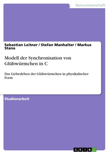 Studienarbeit aus dem Jahr 2009 im Fachbereich Physik - Biophysik, Note: 1.0, Universität Wien (Physik), Sprache: Deutsch, Abstract: Glühwürmchen verhalten sich im Grunde wie Neuronen: Sie ’schalten’ sich zusammen, um einen verstärkten, geordneten Informationsimpuls zu erzeugen. Im Falle der (männlichen) Glühwürmchen ist das ein synchronisiertes Blinken abertau- sender Tiere, um Paarungsbereitschaft zu signalisieren. Ein einzelnes Männchen blinkt zu schwach, um ein Weibchen, das hoch über den Baumwipfeln fliegt, anzulocken. Eine ganze Schar von Tieren tut sich also zusammen, um somit die Chance auf Fortpflanzung drastisch von quasi 0 auf ca. 1:N pro Weibchen zu steigern, wobei N die Anzahl der männlichen Würmchen ist. Die Glühwürmchen dürfen aber nicht durcheinander blinken. Die Weibchen reagieren nur auf ein regelmäßige, artspezifische Blinkperiode. Ein Glüh- würmchen blinkt also mit einer bestimmten Eigenfrequenz, daher dauert es eine gewisse Zeit, bis sich Kolonien von Glühwürmchen geeinigt (synchronisiert) haben, sprich den Phasenverschub auf 0 setzen. Bei Neuronen ist der Sinn und Zweck natürlich ein anderer: Durch Zusammenschalten mehrerer Neuronen können Muster erkannt und gelernt werden (Hepp’sche Regel), (Sinnes)reize und Denkprozesse können also somit verarbeitet werden. Neuronen geben dabei keinen Lichtblitz sondern die Information in Form von geringen elektrischen Strö- men an andere ab und vernetzten sich dadurch. Die Synchronisation ist grundlegend für ein Zusammenspiel von Millionen an Zellen und der wichtigste Prozess eines komplexen Netzwerkes wie des menschlichen Gehirns. Multimedia) 2009: Mitgestaltung und Live-Präsentation auf der 'Langen Nacht der Forschung' in Wien als Vertretung der Biophysik mit dem Thema 'Das Rätsel der Wasserbrücke (inkl. Produktion von didaktischen Hochgeschwindigkeitsvideos und einer Website) SONSTIGE TÄTIGKEITEN seit 2008: Einzelunternehmen der Branche Film- und Medienproduktion (SLfilm.at) 2012: 'Flaktürme als saisonale Wärmespeicher' war der Gewinner des Wettbewerbs 'EnergieNeuDenken' des bm:vit in Wien