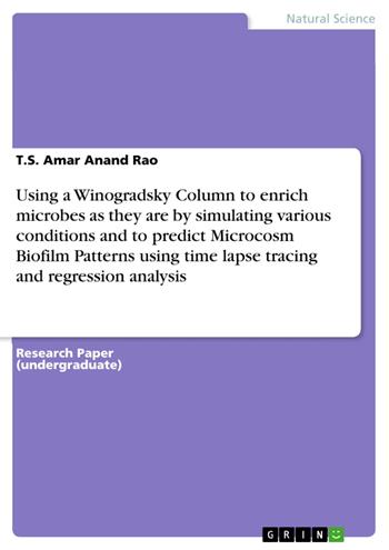 Research Paper (undergraduate) from the year 2011 in the subject Biology - Micro- and Molecular Biology, grade: A / 1 , Indian Institute of Science, course: Microbial Biofilms Project - A new tool to study microbes as they are, language: English, abstract: Of all the microbes known most are uncultured because of their fastidious nature . Most part of microbial interactions are still unexplored. Herein we use an age old tool, Winogradsky column to enrich, simulate the microbes as they are and predict microcosm biofilm patterns. We have worked on many simulation parameters to better the Winogradsky column in every way. We describe methods to bring the interactions of the microbes in biofilms at a mathematical level. We also have explored the various practical applications possible out of winogradsky column like using it as a universal enrichment medium for all microbes to grow as they are and also to isolate and evolve purpose based microbes for degradation studies, harnessing the redox potential of microbial succession.