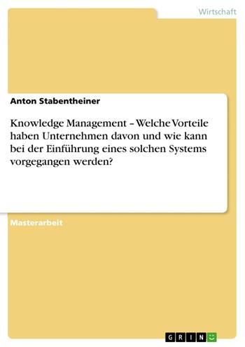 Masterarbeit aus dem Jahr 2011 im Fachbereich BWL - Unternehmensführung, Management, Organisation, Note: 1,4, World Wide Education, Veranstaltung: MBA in General Management, Sprache: Deutsch, Abstract: 1. Einleitung Der Wandel unserer Gesellschaft zu einer Wissensgesellschaft wird in unserer globalisierten, schnelllebigen Zeit immer wichtiger. Wissen schnell und nachhaltig zu generieren wird für Unternehmen immer mehr ein unverzichtbarer Wettbewerbsvorteil. Das Wissen mittlerweile einen besonderen Stellenwert hat, ist vielen Unternehmen bewusst, trotzdem wird oft mit zu wenig System daran gearbeitet. Um dies zu ändern, ist ein systematisches Knowledge-Management für Unternehmen von unschätzbarem Wert. Ziel eines solchen Systems ist es, nicht nur Wissen zu „produzieren“, sondern auch für alle Beteiligten verfügbar zu machen.
