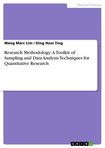Document from the year 2012 in the subject Mathematics - Statistics, Monash University Malaysia, Sunway Campus, language: English, abstract: Selecting appropriate sampling methods and data analysis techniques for a research study is generally accepted by all researchers in the academia as an imperative component of the research methodology. However, researchers may be encountered with dilemmas when it comes to choosing the most suitable combination of methods to obtain a randomize sample and the best data analysis techniques which are able to project the true state of affairs of the researched phenomenon. This book features a wide range of sampling and data analysis techniques which have been proven to be effectively useful in guiding researchers in the adoption of the most appropriate sampling and data analysis techniques which are in line to accomplish the established research objectives.