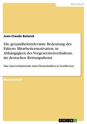 Masterarbeit aus dem Jahr 2010 im Fachbereich BWL - Unternehmensführung, Management, Organisation, Note: 1,4, Hochschule Magdeburg-Stendal; Standort Magdeburg, Sprache: Deutsch, Abstract: Gegenstand der Studie: Die vorliegenden Querschnittstudie unter Einsatzkräften in Nordhessen untersucht die gesundheitsrelevante Bedeutung des Faktors Mitarbeitermotivation in Abhängigkeit des Vorgesetztenverhaltens. Ziel ist es die Zusammenhänge zwischen Führung und Mitarbeitermotivation, und die daraus resultierenden gesundheitlichen Auswirkungen auf Einsatzkräfte im deutschen Rettungsdienst näher zu untersuchen. Methodik: Eine systematische Literaturrecherche und Dokumentenanalyse zur theoretischen Hinführung der vorliegenden Arbeit bilden die ersten Mittel der Wahl. Weiterhin werden in einer Querschnittstudie 200 Einsatzkräfte in Nordhessen, mittels standardisiertem Fragebogen (COPSOQ, WHO-5) befragt. Ergebnisse: Hohe Führungsqualität des Vorgesetzten korreliert positiv mit hoher Arbeitszufriedenheit und einem positiven physischem sowie psychischem Gesundheitszustand der Einsatzkräfte. Rettungsdienstmitarbeiter welche eine hohe Führungsqualität ihres Vorgesetzten empfinden, messen ihrer Arbeit eine hohe Bedeutung bei. Das Alter der Einsatzkräfte hat keinen direkten Einfluss auf das vermehrte Auftreten von Stresssymptomen, eines sich entwickelnden Burnoutsyndroms, die Arbeitszufriedenheit sowie den allgemeinen Gesundheitszustand. Bei Betrachtung des BMI kann festgestellt werden dass die meisten Einsatzkräfte übergewichtig oder gar adipös sind. Es imponiert die Erkenntnis dass die meisten übergewichtigen oder adipösen Einsatzkräfte in 24h- und 12h- Schichtmodellen anzutreffen sind. Ein direkter Zusammenhang zwischen dem Ausmaß der psychischen Belastungssituation und dem BMI, in Abhängigkeit des Ernährungsverhaltens der Einsatzkräfte, kann nicht festgestellt werden. Die psychische Belastung ist bei Einsatzkräften welche überwiegend in 24h- Schichtmodellen arbeiten höher ausgeprägt als bei Kollegen in kürzeren Schichtmodellen. Fazit: Führungskräfte können durch ein positives und motivierendes Führungsverhalten verstärkt Einfluss auf die Motivationsebenen der Einsatzkräfte nehmen. Diese Einflussnahme bewirkt eine erhöhte Arbeitszufriedenheit, welche sich wiederum positiv auf den physischen sowie psychischen Gesundheitszustand auswirkt.