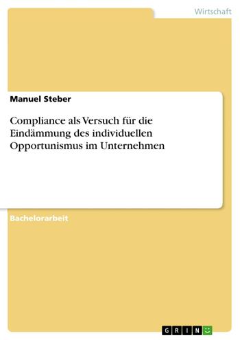 Bachelorarbeit aus dem Jahr 2012 im Fachbereich BWL - Allgemeines, Note: 1,3, Hochschule für angewandte Wissenschaften Kempten, Sprache: Deutsch, Abstract: In dieser Arbeit werden zu Beginn die Entwicklungen im System der Wirtschaft skizziert, die das opportunistische Verhalten der Wirtschaftsakteure gefördert, eine gewisse Orientierungsproblematik unter ihnen ausgelöst und dadurch den Weg in eine wirtschaftliche und ethische Krise geebnet haben könnten. Diese Skizze möchte keine uneingeschränkte Gültigkeit proklamieren, sondern versucht vielmehr mögliche Aspekte aufzugreifen, aus denen sich der Bedarf eines Regel- und Kontrollsystems wie der Compliance überhaupt erst ergibt. Im Hauptteil wird das Konzept der Compliance als eine mögliche Reaktion auf den Opportunismus ausführlich vorgestellt. Zu diesem Zweck werden die Entwicklung sowie die Inhalte eines Compliance-Programms beschrieben und die einzelnen Schritte der erfolgreichen Implementierung in einem Unternehmen nachvollzogen. Da oftmals Kritik an der ernsthaften Umsetzung eines solchen Programms und etwaigen investigativen Hintergedanken der Unternehmensleitung geäußert wird, beschäftigt sich der letzte Teil mit einer kritischen Betrachtung des Themas und der Dekonstruktion ausgewählter Verhaltenskodizes.