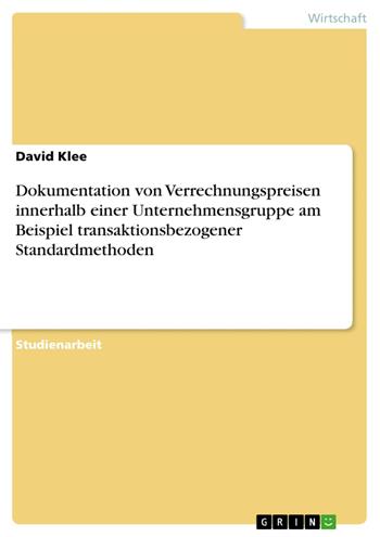 Dokumentation von Verrechnungspreisen innerhalb einer Unternehmensgruppe am Beispiel transaktionsbezogener Standardmethoden (eBook)