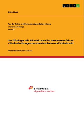 Wissenschaftlicher Aufsatz aus dem Jahr 2012 im Fachbereich Jura - Zivilprozessrecht, Note: keine, Eberhard-Karls-Universität Tübingen, Sprache: Deutsch, Abstract: Sowohl die Insolvenzordnung als auch die Schiedsgerichtsbarkeit stellen zwei Sonderrechte dar. In weiten Teilen unklar ist, welche Wechselwirkungen zwischen diesen beiden Sonderrechten bestehen und ob und inwieweit das eine durch das jeweils andere begrenzt beziehungsweise ergänzt wird. So stellt sich die Frage, welche Auswirkungen die Eröffnung eines Insolvenzverfahrens über das Vermögen des Schuldners auf eine streitige Forderung eines Gläubigers hat, wenn sich diese Forderung aus einem Vertrag ergibt, in dem eine Schiedsklausel enthalten ist. Nach einer kurzen Zusammenfassung der Besonderheiten beider Rechte soll Ausgangspunkt der Überlegungen sein, ob der Gläubiger dieser Forderung am Insolvenzverfahren teilnehmen kann oder dies sogar muss, obwohl er sich im Rahmen seiner Privatautonomie bewusst der Schiedsgerichtsbarkeit unterworfen hat.