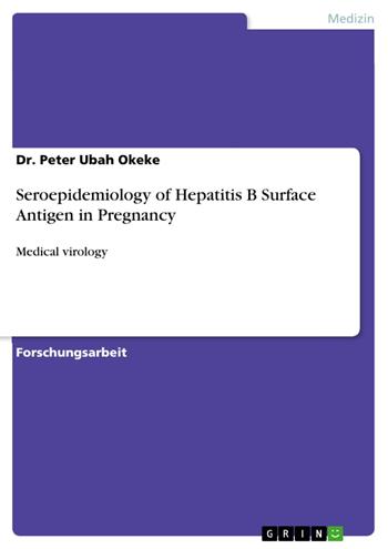 Forschungsarbeit aus dem Jahr 2012 im Fachbereich Medizin - Innere Medizin, ( Atlantic International University ) (School of Science & Engineering), Veranstaltung: Health Science, Sprache: Deutsch, Abstract: A total of 83 pregnant women of Porto Novo were studied for HBsAg infectivity within the time period of 26th July to 30th August, 2012, during their first visit to the antenatal section- Hospital of Porto Novo. The age of the pregnant women studied range from 15 years to 46 years old. The results of 1.2% were reported for HBsAg positivity among pregnant women of multigravid. They values of transaminase recorded at various stages were not statistically significant. In conclusion, immunization of all infants, education of the general public and healthcare providers, and more research studies, among others, were advised for the elimination of hepatitis B virus infectivity in this region.