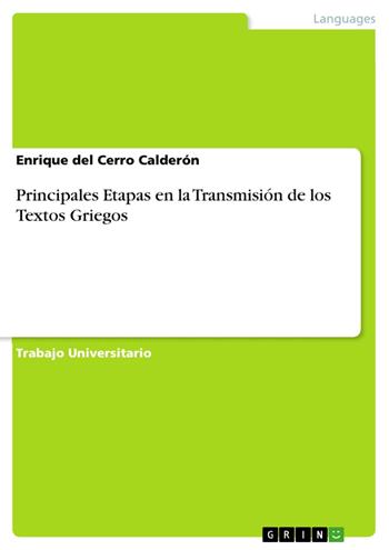 Trabajo Universitario del año 2011 en eltema Literatura - Literatura comparada, Nota: 9, , Materia: Máster - Transmisión de textos griegos y latinos, Idioma: Español, Resumen: La historia de la transmisión de los textos griegos es un fenómeno complejo a la vez que apasionante. En la actualidad contamos con una buena muestra de lo que el genio griego fue produciendo a lo largo de un vasto período de tiempo, desde la Antigüedad hasta nuestros días. Sin embargo, no conservamos nada más que una pequeña parte de lo que debió ser aquella producción. Aunque algunos textos nos han llegado directamente de manos de su autor, normalmente, la transmisión de la cultura griega ha estado sujeta desde el principio a procesos selectivos que dependían, entre otras cosas, del canon estético de las distintas épocas, de los cambios en el soporte material escriturario así como cambios en los tipos de escritura empleados. A pesar de todo, lo que conservamos nos ha llegado gracias a la labor de personas que, generación tras generación, se fueron preocupando de copiar una y otra vez unas obras que consideraron dignas de ser conocidas y transmitidas a las generaciones futuras. En el presente trabajo vamos a centrarnos en cómo se ha producido la transmisión de los textos griegos en las diferentes etapas históricas que suelen considerarse tradicionalmente: la Antigüedad o época prealejandrina, la época helenística, la época romana, la época bizantina, el renacimiento bizantino, el renacimiento italiano y, por fin, la imprenta cuya invención aseguró para siempre la transmisión y copia a gran escala de los textos.