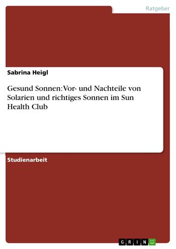 Studienarbeit aus dem Jahr 2011 im Fachbereich Ratgeber - Gesundheit, Note: 2,0, Hochschule für angewandtes Management GmbH, Veranstaltung: Präsentieren und Visualisieren, Sprache: Deutsch, Abstract: Sonnenbaden im Solarium ist wie ein Kurzurlaub. Doch leider ist die künstliche Sonne mit Vorsicht zu genießen. Die Strahlen können die Fasern des Bindegewebes zerstören und somit die Haut schneller altern lassen. Weiter soll das Sonnenbaden das Risiko auf Hautkrebs erhöhen. Richtlinien und Vorschriften in Solarien sollen helfen, dass die Geräte in gutem Zustand bleiben und das Jugendschutzgesetz eingehalten wird. Andererseits helfen die Strahlen bei der Behandlung von Hauterkrankungen und bei der Verbesserung der Gesundheit und des Wohlbefindens. Durch das neuartige Konzept des Sun Health Club können zum ersten Mal die Ziele Wunschbräune und gesunde Sicherheit durch ein computergestütztes Besonnungssystem kombiniert werden.