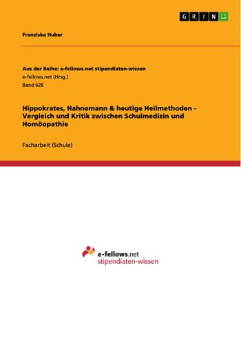 Facharbeit (Schule) aus dem Jahr 2011 im Fachbereich Philosophie - Epochenübergreifende Abhandlungen, Note: 15, , Sprache: Deutsch, Abstract: „Die Verordnungen werde ich treffen zum Nutzen der Leidenden nach meinem Vermögen und Urteil, mich davon fernhalten, Verordnungen zu treffen zu verderblichen Schaden und Unrecht.“ Dieses Zitat stammt aus dem berühmten Eid des Hippokrates, „von dem heute noch die stärkste normative Kraft ausgeht“2, obwohl er heutzutage von keinem Arzt mehr geleistet werden muss bei Eintritt in den Berufsstand. An dessen Stelle steht nun das Genfer Gelöbnis von 1948. Trotz allem sind die ethischen Grundgedanken diesen Werkes auch heute noch aktuell und können zur Beurteilung moderner Probleme hinzugezogen werden. Da viele Menschen heutzutage wegen diverser Krankheiten viele verschiedene Ärzte konsultieren und konservative Behandlungen der Schulmedizin oft fehlschlagen, suchen sie andere Methoden der Heilung. Hierzu ist besonders unter Berücksichtigung des Hippokratischen Eides interessant, welche Methode des Heilens beim Menschen sowohl ethisch als auch physiologisch gesehen am sinnvollsten ist. Dieses soll vor allem unter den zwei gegensätzlichen Prinzipien, Ganzheitlichkeit und Spezialisierung, untersucht werden. Mit Spezialisierung ist die Teilung der Medizin in einzelne Fachbereiche und daher die Behandlung der spezialisierten Ärzte gemeint. Zu dieser Fragestellung wird der Anfang bei Hippokrates liegen, da bei ihm zuerst von Medizin als Wissenschaft gesprochen wird. Er vertritt die beiden grundsätzlichen Methoden der Heilung: Heilung durch das Gegensätzliche und Heilung durch das Ähnliche. Danach soll Hahnemanns klassische Homöopathie bearbeitet werden, dessen Wurzeln auf Hippokrates gründen. Er verspricht Heilung durch das Ähnliche. Schließlich, nach einer kurzen Vorstellung der Methoden der Schulmedizin, folgt anhand der erarbeiteten Fakten von Hippokrates und Hahnemann eine kritische Gegenüberstellung der relevanten Methoden der Schulmedizin. Da sowohl die Lehren Hippokrates‘ und Hahnemanns als auch die Methoden der Schulmedizin ein weit umfassendes Thema sind, wird die Konzentration nur auf die für diese Fragestellung relevanten Gemeinsamkeiten und Unterschiede der drei Subjekte liegen. Diese sind die Ganzheitlichkeit bei Hippokrates und Hahnemann, im Gegensatz zur Spezialisierung und der Betonung einzelner Symptome in der Schulmedizin, und außerdem die grundsätzlichen Heilmethoden aller drei. Die Beurteilung der Wissenschaftlichkeit der Homöopathie, die viel diskutiert wird, soll ganz außen vor gelassen werden.