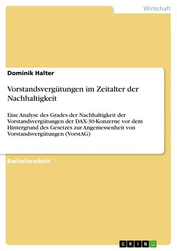 Bachelorarbeit aus dem Jahr 2013 im Fachbereich BWL - Unternehmensführung, Management, Organisation, Note: 1,0, Fachhochschule des Mittelstands, Sprache: Deutsch, Abstract: Im Jahr 2009 wurde eine Änderung des Aktiengesetztes unter dem Namen "Gesetz zur Angemessenheit der Vorstandsvergütung" (VorstAG) beschlossen. Diese soll den Aktiengesellschaften verbindliche Vorgaben in Bezug auf Nachhaltigkeit der Vorstandsvergütungen machen. Dabei werden nicht nur Zuständigkeiten der Kontrolle und Festlegung der Vorstandsvergütungen neu geregelt und beispielsweise Abfindungen mit Grenzen versehen. Es wird auch festgelegt, dass „die Vergütungsstruktur bei börsennotierten Gesellschaften auf eine nachhaltige Unternehmensentwicklung auszurichten ist. Variable Vergü-tungsbestandteile sollen daher eine mehrjährige Bemessungsgrundlage haben.“ Die Arbeit geht daher der Frage nach, was genau das VorstAG bisher in den Vorstandsvergütungen der im Deutschen Aktienindex (DAX) notierten Konzerne bewirkt hat. Inwiefern hat das Gesetz Einfluss auf Struktur und Höhe der Vorstandsvergütungen genommen und wird Nachhaltigkeit im Sinne von Ökonomie, Ökologie und Sozialem auch vergütet? Dazu werden die Jahresberichte aller DAX-30-Konzerne der Jahre 2006 bis 2011 herangezogen. Das jeweilige Selbstverständnis bzw. die Definition von Nachhal-tigkeit der Unternehmen wird zunächst dargestellt. In einem zweiten Schritt werden die Vergütungssysteme der Unternehmen unter-sucht und die Ergebnisse bezüglich Struktur und Wachstum präsentiert. Gradmesser der Nachhaltigkeit ist im finalen dritten Schritt, ob, wenn ja auf welche Art und Weise und – sofern bestimmbar – in welcher Höhe nicht-finanzielle Kennzahlen Einfluss auf die variablen Komponenten der Vergütungen der Vorstände der DAX-Unternehmen nehmen.