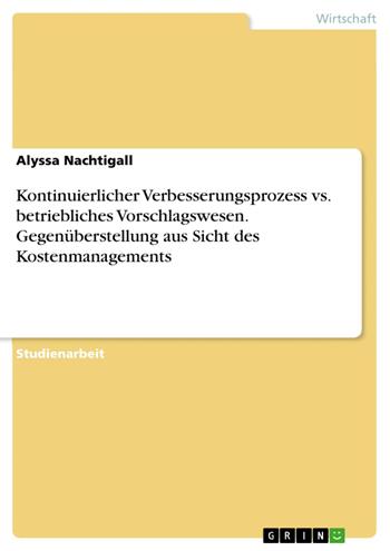 Kontinuierlicher Verbesserungsprozess vs. betriebliches Vorschlagswesen. Gegenüberstellung aus Sicht des Kostenmanagements (eBook)