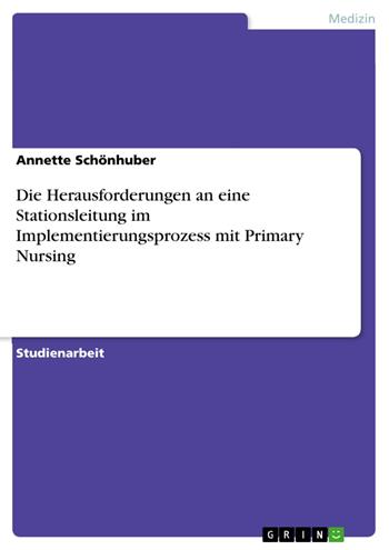 Studienarbeit aus dem Jahr 2010 im Fachbereich Pflegewissenschaft - Sonstiges, Note: 2,7, Katholische Stiftungsfachhochschule München (Pflege), Sprache: Deutsch, Abstract: Während des Implementierungsprozesses um das Pflegeorganisationssystem Primary Nursing kommen diverse Herauforderungen auf eine Stationsleitung zu. Klassische Organisationskonzepte, wie die Funktionspflege, Bereichspflege, Gruppenpflege oder Zimmerpflege werden abgelöst und fordern gerade von der Stationsleitung ein Umdenken bezüglich ihrer Rolle im Team und der Gesamtorganisation, wie z.B. dem Krankenhaus oder Altenheim. Nachdem Konzept und Ziele von Primary Nursing beschrieben werden, wird auf die Rolle der Stationsleitung eingegangen. Vorab werden jedoch noch theoretische Grundlagen geklärt.