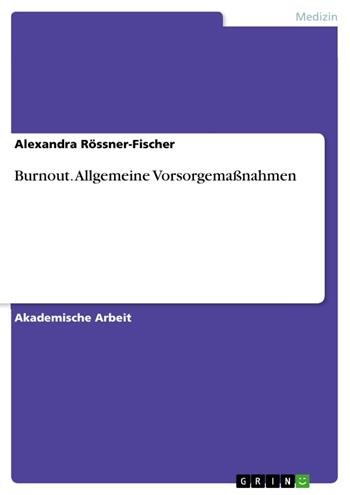 Akademische Arbeit aus dem Jahr 2007 im Fachbereich Medizin - Sozialmedizin, Arbeits- und Berufsmedizin, Note: 1,3, Verwaltungs- und Wirtschaftsakademie Rhein-Neckar e. V., Sprache: Deutsch, Abstract: Burnout wird häufig als Schwäche, Versagen oder individuelle Fehlleistung angesehen, obwohl in der Forschung zunehmend akzeptiert wird, dass die Arbeitsbedingungen bei der Entstehung von Burnout eine wichtige Rolle spielen. Dieser Band erklärt, worum es sich bei Burnout handelt und mit welchen Maßnahmen man Burnout in der Arbeit und im Privatleben verhindern kann.