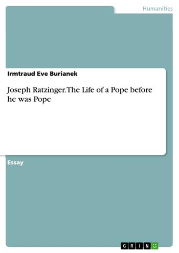 Essay from the year 2011 in the subject Theology - Historic Theology, Ecclesiastical History, , course: The Life of Josef Ratzinger, language: English, abstract: This little book was originally a series of speeches on the theologian Joseph Ratzinger and former pope Benedict XVI at Holy Cross Catholic Church in Atlanta, Georgia, in the United States. It is a biographical-historical approach to this important historical personality leading up to the year 2005, the election to the highest office of the Catholic Church. The six chapters span from Ratzinger's youth in Bavaria, his close relationship with his family and brother Georg, his early priesthood, his theological development, his experiences as a professor in the sixties, his years as archbishop of Munich and his time in Rome as Prefect of the Congregation for the doctrine of the faith. What this biographical study can offer, is a brief introduction to essential components of Ratzinger's life and career.