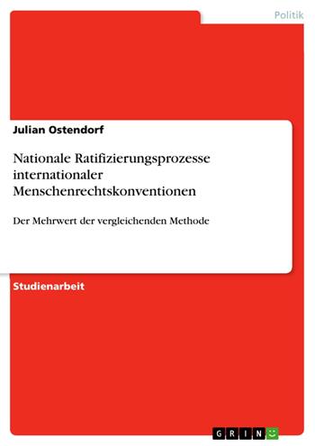 Studienarbeit aus dem Jahr 2014 im Fachbereich Politik - Methoden, Forschung, Note: 1,7, , Sprache: Deutsch, Abstract: Die vorliegende Hausarbeit schlägt ein Forschungsdesign zur Analyse von Ratifizierungsprozessen vor. Dabei wird das Politikfeld Menschenrechte ausgewählt, um anhand einer Vergleichsanalyse die unterschiedlichen Ergebnisse von Ratifizierungsprozessen zu erklären. Es liegt dabei zunächst nahe, die Theorie Putnams der „Two-Level-Game“-Logik aufzugreifen. Die Delegationsschwierigkeiten einer verhandelnden Regierung und die Antizipation von innerstaatlichen Interessen stehen hierbei im Blickpunkt. Es soll jedoch im Folgenden deutlich gemacht werden, dass dieser Ansatz der hier gewählten Fragestellung nicht hilfreich ist. Die simple Fragestellung lautet: Warum ratifizieren Staaten einen Vertrag und warum ratifizieren andere Staaten nicht? Der Two-Level-Game-Ansatz ist damit relativ unbrauchbar, da bereits die innerstaatlichen Interessen antizipiert wurden. Das hier verfolgte Forschungsdesign soll sich eben nicht um die Verhandlungsstrategie der Regierungen auf internationaler Ebene beziehen, sondern auf den Gesetzgebungsprozess zu einem internationalen Vertrag, damit dieser nach nationalem und internationalem Recht implementiert werden kann. Da der Ansatz Putnams kein anknüpfbares theoretisches Grundgerüst für die Analyse bietet, muss auf andere Theorien Bezug genommen werden. Da es sich um die Analyse nationaler Verfahren handelt, die zumindest in „liberalen Demokratien“ durch Parteienwettbewerb bestimmt sind, beziehe ich die Vetospielertheorie ein.