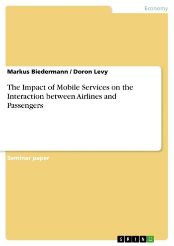 Seminar paper from the year 2013 in the subject Business economics - Offline Marketing and Online Marketing, , language: English, abstract: The purpose of this paper is to research how mobile services impact the interaction between airlines and passengers. The paper begins with a PEST analysis of the European airline industry and focuses on technological changes. It continues with a SWOT analysis of Lufthansa, where we interlink mobile technology as a platform which could reduce costs for the airline. In-depth research on mobile services and their impact on the interaction between airlines and passengers is performed by evaluating different mobile services along Lufthansa's value chain, namely the airline's activities in operations, outbound logistics and marketing and sales. We claim that the interaction through mobile services is limited to one-way interaction, where airlines embrace the mobile services to perform cost reduction along their value chain, and neither offer two-way interaction with their passengers nor asking them to co-create the brand or the product. The current wireless mobile services are already offered via the internet, and allow a better and direct service for passengers. Mobile services are necessary for airlines, so they are not seen as out of date, but it does not mean that having mobile services contributes to having a competitive advantage. On the contrary, not having mobile services results in strategic disadvantage.
