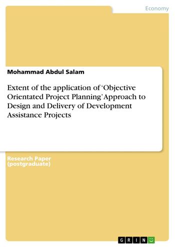 Research Paper (postgraduate) from the year 2015 in the subject Business economics - Business Management, Corporate Governance, University of Bradford (BCID), course: MSc in Project Planning and Management, language: English, abstract: A development project is based on its contribution, on definite events, and on production which are projected to add to the preferred purposes and ultimate goal. The aims of the development assistance projects are poverty alleviation, improvement of living standards, environment protection, human rights protection etc. The rationale of development projects is to persuade transform whose consequences are most wanted within the limited scope. The main idea of this research is to assess the application of the OOPP approach for contributing the design and delivery of development assistance projects. The report covers the logical steps of OOPP approach and stages of project design with a conceptual framework, the critical assessment of extent of OOPP approach for design and delivery, and the criticisms of OOPP approach in development assistance project planning and execution.