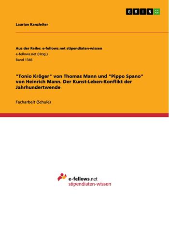 Facharbeit (Schule) aus dem Jahr 2014 im Fachbereich Germanistik - Neuere Deutsche Literatur, Note: 1,0, , Veranstaltung: Wissenschaftspropädeutisches Seminar "Die Manns und München", Sprache: Deutsch, Abstract: Zwischen Leben und Kunst: "Tonio Kröger" und "Pippo Spano" sind die Titel zweier literarischer Werke, die in der Zeit der Jahrhundertwende entstanden sind und sich mit der Rolle des Künstlers und seiner Auseinandersetzung mit dem Leben beschäftigen. Beide Erzählungen sind Schlüsselnovellen: Zum einen für das Fin de siècle, dessen Elemente, Motive und Strömungen sich unverkennbar in den Texten widerspiegeln, aber auch für die künstlerisch-biographische Entwicklung ihrer Autoren. Außerdem sind "Tonio Kröger" und "Pippo Spano" wegen der intensiven persönlichen Auseinandersetzung mit dem Künstlertum ganz besonders lebendige und aufschlussreiche Beispiele. Sie lassen uns verstehen und mitfühlen, welche große Rolle diese Auseinandersetzung im Fin de siècle spielte und bringen uns diese Epoche des Umbruchs näher. Die Arbeit befasst sich in einem ersten Teil allgemein mit der Künstlerproblematik als Phänomen der Zeit um 1900. In einem zweiten Teil untersucht sie dann das Kunst-Leben-Problem ganz konkret an "Tonio Kröger" und anschließend vergleichend an "Pippo Spano". Sie versucht vor allem die Unterschiede und Gemeinsamkeiten der darin auftretenden Künstlerexistenzen Tonio Kröger und Mario Malvolto und deren Umgang mit dem Kunst-Leben-Konflikt herauszuarbeiten.
