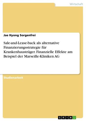 Studienarbeit aus dem Jahr 2012 im Fachbereich BWL - Investition und Finanzierung, Note: 1,3, Hochschule für Wirtschaft und Recht Berlin (Institute of Management Berlin), Veranstaltung: Corporate Finance, Sprache: Deutsch, Abstract: Die Sale-and-Lease-back-Finanzierung stellt eine sinnvolle Alternative für Krankenhausträger dar. Angesichts der zunehmenden Finanzierungsproblematik im Gesundheitsmarkt und Krankenhaussektor stehen solche alternative Finanzierungsstrategien immer mehr im Fokus des Interesses. Durch Hebung von stillen Reserven stärkt die Sale-and-lease-back-Maßnahme die Eigenkapitalbasis, indem bereits aktivierte Werte des Anlagevermögens wie Immobilien in Liquidität umgewandelt werden. Die vorliegende Hausarbeit untersucht die Funktionsweise des Sale-and-Lease-back-Verfahrens und seine Auswirkungen auf wichtige Finanzkennzahlen wie die Liquidität auch unter besonderer Anwendung im Krankenhaus- bzw. Pflegesektor. Als praxisnahes Beispiel dient die Marseille-Kliniken AG und ihre Finanzpolitik sowie der Einsatz von Sale-and-lease-back zwischen 2004 und 2008.