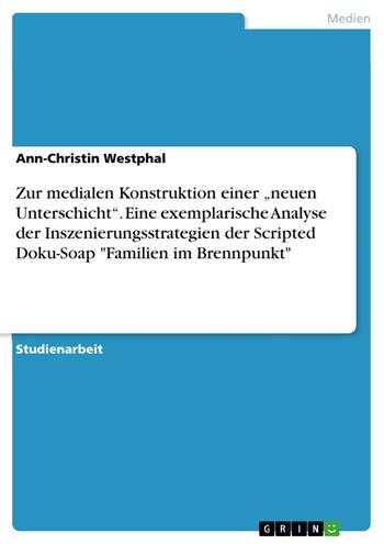 Studienarbeit aus dem Jahr 2011 im Fachbereich Medien / Kommunikation - Film und Fernsehen, Note: 1,3, Universität Paderborn (Instisut für Medienwissenschaften), Veranstaltung: Unterschichtenkultur, Sprache: Deutsch, Abstract: In der vorliegenden Hausarbeit befasse ich mich mit der medialen Konstruktion einer „neuen Unterschicht“ und zwar anhand der Analyse typischer Inszenierungsstrategien der „neuen Unterschicht“ in der Scripted Doku-Soap ‚Familien im Brennpunkt‘. Vertreter der „neuen Unterschicht“ schreiben den Angehörigen dieser Schicht eine „Armut im Geiste“ zu und sprechen von einer „kulturellen Spaltung“, die eine bestimmte „Unterschichtenkultur“ hervorbringe. Angesichts des langwierigen Vermittlungsprozesses und der anhaltenden Debatte um eine „Hartz 4-Reform“, die unter anderem eine monatliche Erhöhung des Arbeitslosengeldes II um fünf Euro, aber auch ein Bildungspaket für Kinder beinhaltet, zeigt sich die anhaltende Brisanz dieses Themas. Aber dies sei nur eine Bemerkung am Rande. Meine Hausarbeit zielt darauf ab, eine Charakterisierung der repräsentierten Unterschicht in dem Format ‚Familien im Brennpunkt‘ vorzunehmen und dabei formatspezifische Inszenierungsstrategien offen zu legen. Im Vordergrund steht hierbei eine medien-soziologische Perspektive auf die Repräsentation sozialer Klischees und stereotypen Darstellungen der „neuen Unterschicht“ in diesem Format. Ich will aufzeigen und dies ist zugleich meine Arbeitshypothese, dass Scripted Reality-Formate die stereotypen Zuschreibungen bezogen auf die „neue Unterschicht“ aus Feuilleton und dem restlichen medialen, politischen und gesellschaftlichen Diskurs bei der Darstellung ihrer handelnden Figuren und dessen Umfeld verwenden. Die Scripted Doku-Soap ‚Familien im Brennpunkt‘ eignet sich meines Erachtens besonders gut für eine Analyse. Zum Einen gilt das Scripted Reality-Format auf der Seite des Feuilletons als „Trash-TV“, „Hartz-Theater“ oder als „Unterschichtenfernsehen“ und passt insofern glänzend in die mediale Konstruktion und Inszenierung einer „neuen Unterschicht“ hinein. Zum anderen ist die Sendung ‚Familien im Brennpunkt‘ ein Quotenerfolg für das Format an sich - und natürlich auch für den Fernsehsender RTL.