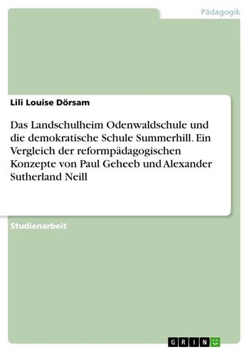 Studienarbeit aus dem Jahr 2015 im Fachbereich Pädagogik - Reformpädagogik, Note: 14, Justus-Liebig-Universität Gießen (Institut für Erziehungswissenschaften), Veranstaltung: Pädagogische Provinzen, Sprache: Deutsch, Abstract: Die vorliegende Hausarbeit hat zum Ziel, die pädagogischen Konzepte der Odenwaldschule und der demokratischen Schule Summerhill darzustellen und zu vergleichen. Es soll aufgezeigt werden, inwieweit die Leitideen Paul Geheebs und Alexander Sutherland Neills Ähnlichkeiten aufweisen und in welchen Punkten sie sich unterscheiden. Zunächst findet eine zeitliche Einordnung des Themas statt. Die gesellschaftlichen Umstände Ende des neunzehnten Jahrhunderts und die Entstehung der Reformpädagogik werden beschrieben, da sie zur Gründung der beiden Schulen beitrugen. Anschließend sollen die beiden Gründer der Schulen, Paul Geheeb und Alexander Sutherland Neill, vorgestellt werden. Der nächste Abschnitt befasst sich mit dem pädagogischen Konzept und den Grundlagen der Odenwaldschule sowie einem Eindruck über das Leben im Landschulheim Odenwaldschule. Der vierte Abschnitt befasst sich mit der demokratischen Schule Summerhill. Auch hier sollen das Konzept, die pädagogischen Grundgedanken sowie ein Einblick in das Leben in der Schule gegeben werden. Im letzten Abschnitt der Arbeit werden schließlich die Gemeinsamkeiten und Unterschiede der beiden Schulen zusammengefasst.