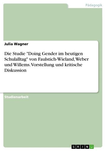 Studienarbeit aus dem Jahr 2014 im Fachbereich Pädagogik - Schulpädagogik, Note: 2,0, , Sprache: Deutsch, Abstract: Die empirische Studie „Doing Gender im heutigen Schulalltag“ untersucht die soziale Konstruktion von Geschlecht in schulischen Interaktionen und wurde 2004 veröffentlicht. Durchgeführt wurde sie von Hannelore Faulstich-Wieland, Martina Weber und Katharina Willems. Über einem Zeitraum von drei Jahren wurden 3 Schulklassen eines Gymnasiums beobachtet, die sich durch eine zahlenmäßig variierende Zusammensetzung von Jungen und Mädchen auszeichnen. In der vorliegenden Seminararbeit werden Methodik und Ergebnisse dieser Studie vorgestellt und diskutiert. Im Kern der Arbeit wird ein Hauptpfeiler der Studie, der Fragebogen, näher analysiert. Dazu wurde eine eigene Erhebung durchgeführt, um anhand der Ergebnisse Rückschlüsse auf das Vorgehen der ersten Studie ziehen zu können.