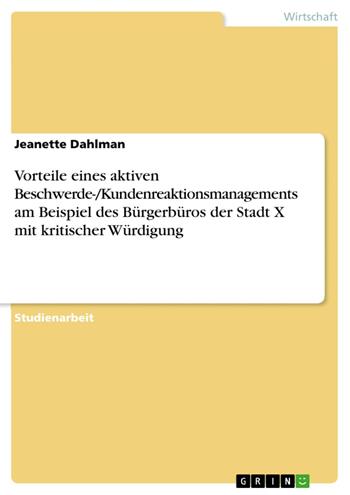 Vorteile eines aktiven Beschwerde-/Kundenreaktionsmanagements am Beispiel des Bürgerbüros der Stadt X mit kritischer Würdigung (eBook)