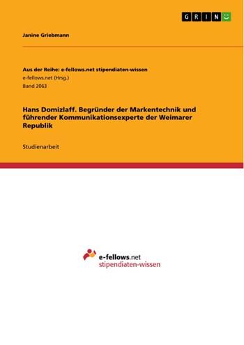 Studienarbeit aus dem Jahr 2015 im Fachbereich Medien / Kommunikation - Theorien, Modelle, Begriffe, Note: 2,0, Universität Leipzig (Institut für Kommunikations- und Medienwissenschaft), Sprache: Deutsch, Abstract: Hans Domizlaff war ein deutscher Kunstmaler, Schriftsteller, Werbeberater und Kommunikationsexperte. „Er hat u. a. dem Gebiet der Reklame einen neuen Sinn, nämlich als Werbung um öffentliches Vertrauen, gegeben. Ferner ist er Begründer der Markentechnik und Mitbegründer der Werbepsychologie überhaupt“ (o. A. 1952: o. S.). Domizlaff wirkte in Leipzig, Hamburg und Berlin vor allem als Schöpfer bekannter Marken und Markenartikel wie „Ernte 23“ und „R6“. Unternehmen, die er beraten hat, waren unter anderem die Reemtsma Cigarettenfabriken AG und die Siemens AG. Außerdem veröffentlichte er einige bedeutsame Bücher, wie „Typische Denkfehler der Reklamekritik“ (1929), „Propagandamittel der Staatsidee“ (1932), „Die Gewinnung des öffentlichen Vertrauens“ (1939) oder „Nachdenkliche Wanderschaft“ (1950). Die vorliegende Hausarbeit soll einen Überblick über das Leben und die Leistungen von Domizlaff geben. Nach einer Beschreibung des biografischen Hintergrunds (Kapitel 2) werden zwei zentrale Werke von Domizlaff vorgestellt und kritisch betrachtet: „Propagandamittel der Staatsidee“ und „Die Gewinnung des öffentlichen Vertrauens“ (Kapitel 3). Die Arbeit endet mit einer Zusammenfassung sowie einer Einschätzung zur heutigen Bedeutung von Domizlaff (Kapitel 4).