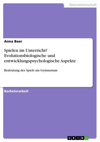 Bachelorarbeit aus dem Jahr 2016 im Fachbereich Biologie - Sonstige Themen, Note: 1,0, Universität Bielefeld, Sprache: Deutsch, Abstract: Die vorliegende Bachelorarbeit befasst sich mit der Thematik des Spiels. Dabei werden einerseits die Schwierigkeiten thematisiert, den Spielbegriff zu definieren, andererseits wird versucht, sich diesem Phänomen entwicklungspsychologisch und evolutionsbiologisch zu nähern und die Funktionen des Spiels herauszustellen. Dieser theoretische Teil dient als Grundlage für die Betrachtung des Spiels in der Schule. Hier werden Spielformen vorgestellt und verschiedene Sichten auf das Spiel in der Schule dargestellt, die durch Auswertung von Literatur gewonnen wurden. Da es viele widersprüchliche Veröffentlichungen zu dem Spiel in der Schule gibt, die zum Teil nicht mehr aktuell sind, wurden auch aktuelle Meinungen zum Spiel in der Schule erhoben. Es wurde dazu ein Online-Fragebogen entwickelt, der sich mit der Bedeutung des Spiels in der Schule befasst. Die Ergebnisse dieses Fragebogens sind, wie diejenigen in der Literatur, zweigeteilt. Das Wesen der Schule und der damit einhergehende Leistungsdruck werden oft als Grund genannt, weshalb dem Spiel ein geringer Stellenwert in der Schule und vor allem in der hier untersuchten Schulform des Gymnasiums eingeräumt wird. Doch auch positive Aspekte, wie die Wissensvermittlung und die Förderung von Kreativität, Merkfähigkeit, Kooperation, Intelligenz, logischem Denken und Problemlösefähigkeit sind Aspekte, die unter den Antworten der Umfrageteilnehmerinnen und Umfrageteilnehmer auftauchen. Denn die Beschäftigung mit Spiel, trotz aller Kritik, ist die Mühe wert und kann in der Schule in den verschiedensten Formen Anwendung finden. Diese Arbeit richtet sich an alle „Spielinteressierten“, die sich mit dem Thema im Rahmen des Studiums, des Referendariats oder auch innerhalb einer Lehrerfortbildung beschäftigen, aber auch an Kritiker des Spiels, die in diesem vielleicht nur verschwendete Zeit innerhalb unserer heutigen Leistungsgesellschaft sehen.