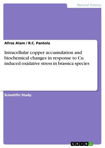 Scientific Study from the year 2016 in the subject Biology - Botany, Bansthali University, language: English, abstract: Out of 90 naturally occurring elements, 53 are considered as heavy metals, however, not all of them have biological significance. Heavy metals cannot be smashed, but can only be altered from one state to another. On the basis of their solubility in physiological conditions, 17 heavy metals are obtainable for living cells and of significance for the organism and ecosystem. Among these metals, Fe, Mn and Mo are important as micronutrients; Cu, Co, Cr, Ni, V, W and Zn are noxious elements with high or low importance as trace elements. Most common heavy metals, namely, Cu, Cd and Zn create the major problem in contaminated soils that is completely different from organic pollutants. Unlike organic pollutants, these heavy metals cannot be biodegraded and therefore exist in the environment for extended periods of time. Hence, environmental pollution caused by these heavy metals becomes more frightening and tricky with ever increasing unplanned mining and unconstrained industrial activities. In present scenario of increasing industrialization, soil and water contamination is exceptionally alarming and widespread all over the developing world, including highly populated countries like China and India. Thus the toxicity of heavy metals in our environment is a worldwide problem and a growing hazard to the sustainable ecosystem. The present book is written on the basis of extensive research with the objectives to find out the uptake and toxicity of copper in three species of Brassica viz. B. juncea (L.) Czern., B. napus L. and B. rapa L. It also provides an insight regarding the tissue specific cellular buildup of copper in root, shoot and leaves of these species. The relationships with growth and biochemical changes under Cu induced stress are also discussed in this book.