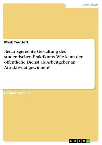 Bachelorarbeit aus dem Jahr 2016 im Fachbereich VWL - Arbeitsmarktökonomik, Note: 2, Hochschule Harz - Hochschule für angewandte Wissenschaften (FH), Sprache: Deutsch, Abstract: Studentische Erfahrungen machen darauf aufmerksam, dass die in der Studienordnung verankerten Ziele des Praktikums nicht immer erreicht werden. Nicht nur die eigens gesammelten Erfahrungen, auch die Praxiserfahrungen von Kommilitonen bestätigen, dass die Qualität der Praktikumsinhalte des Öfteren nicht gegeben war und gleichermaßen nicht genügend Rücksicht auf die Ziele und Erwartungshaltung der Studierenden genommen wurde. Einige Praktika erwiesen sich demzufolge als nicht bedarfsgerecht und konnten nicht den erwarteten Anforderungen und Standards an ein studentisches Praktikum gerecht werden. Die aus den Praktika resultierende Unzufriedenheit der Studenten kann zu einer Ablehnung gegenüber der Praktikumsbehörde als zukünftigem Arbeitgeber führen. Diese Arbeit hat zum Ziel einen Beitrag zur Steigerung der Arbeitgeberattraktivität, der durch die Studierenden der Hochschule Harz wahrgenommenen Praktika im öffentlichen Dienst, zu leisten. Auf der Grundlage einer studentischen Umfrage, sollen Praktikantenprogramme, welche von Organisationen des öffentlichen Dienstes bereitgestellt werden, hinsichtlich ihrer bedarfsgerechten Ausgestaltung untersucht werden. Dabei soll in Erfahrung gebracht werden, wie und in welcher Form sich die im Praktikum gewonnenen Erfahrungen auf die Arbeitgeberattraktivität der Praktikumsbehörde auswirken. Demzufolge soll herausgefunden werden, ob die Qualität der Praktikumsinhalte sowie die Berücksichtigung der Erwartungshaltung der Studierenden, Auswirkungen auf die Attraktivität der Praktikumsbehörden als potenzieller Arbeitgeber hat.