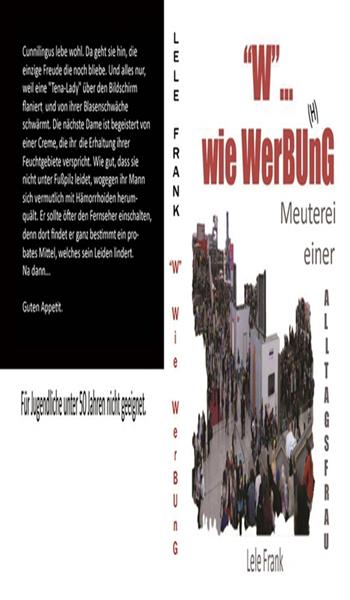 „W“… wie WerBU(H)nG. Ich gebe es zu…: Es war mir ein Bedürfnis dieses Buch zu schreiben. Manchmal möchte ich abtauchen in eine stille, heile Welt und mir Augen und Ohren zuhalten. Manchmal kann man es einfach nicht mehr sehen… nicht mehr hören. Natürlich werden die Erschaffer dieser… dieser… na, ja, sagen wir mal so: Dieser intelligenzfreien, geistigen Ergüsse mich hassen wie Galle. Aber ich schätze mal vorab: Es ist mir egal. So egal, wie es unseriösen Kredit-Anbietern ist, ob sie mit ihren dubiosen Angeboten, für die man nicht einmal eine Schufa-Auskunft vorlegen muss, ihre Kunden die nächste Klippe hinabstürzen. Sie lachen sich ins Fäustchen wenn sie wieder einen Dummen erlegt haben, der mit einem neuen- noch größeren Loch, ein anderes – bereits vorhandenes – stopft. Wozu auch eine Schufa-Auskunft, wo es doch so totschicke Inkassounternehmen gibt? Dies ist eine Sparte ohne große Angst um die Zukunft. Genauso wie diese skrupelfreien Rechtsanwälte, die sich mit absurden Abmahnungen ihre täglichen Brötchen verdienen. Die würde ich allesamt, gerne an einer hohen Klippe stehen sehen, und beim „Schubsen“ ein kleines bisschen nachhelfen.